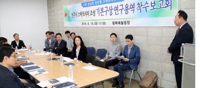 시는 지난 16일 팔복예술공장에서 김승수 전주시장과 용역 수행기관인 한컴라이프케어 관계자, 용역 자문을 맡은 최귀남 델 테크놀로지 아시아 스마트시티 전무 등 사업 관련 관계자 등 10여명이 참석한 가운데 스마트시티의 개념을 도입해 전주만의 특화된 도시모델로 만들어가기 위한 ‘전주시 스마트시티 조성 기본구성 연구용역’의 착수보고회를 개최했다.