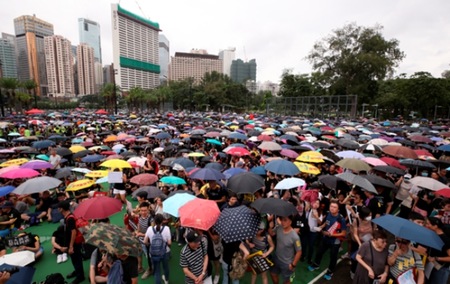 지난 18일 홍콩에서 대규모 반정부시위를 펼치고 있는 시민들.