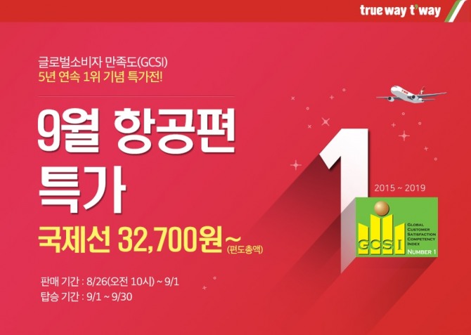 티웨이항공 관계자는 "9월 임박편 특가 항공권으로 선선한 날씨의 가을 여행을 티웨이항공과 함께 즐겨보길 바란다"고 말했다.