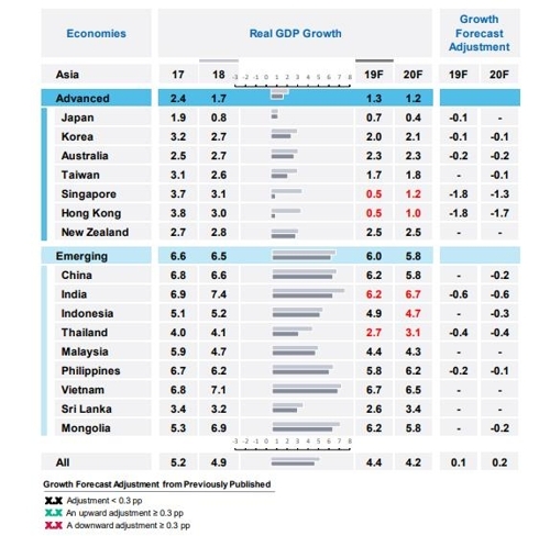 무디스는 이날 발표한 보고서에서 아시아·태평양 지역 16곳의 성장률 전망치를 하향 조정했다.