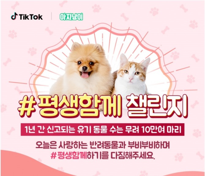 이미지 확대보기삼성카드가 오는 17일부터 30일까지 자사 반려동물 커뮤니티 '아지냥이'와 글로벌 동영상 플랫폼 '틱톡'을 통해 반려동물의 유기 문제에 관심을 높이기 위한 '평생함께 챌린지' 캠페인을 진행한다고 지난 16일 밝혔다.