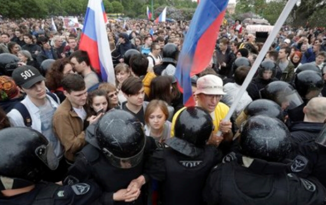 사진은 지난 12일(현지시간) 발생한 모스크바 시민들의 반정부시위.