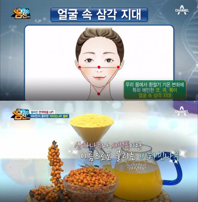 이에 ‘나는 몸신이다’에서는 전신 건강의 열쇠, 얼굴 속 삼각지대 - 코, 귀, 목을 지킬 수 있는 음식으로 ‘비타민나무열매가루’를 꼽으며 이를 활용한 ‘몸신비책 – 비타민 나무 차’를 소개해 눈길을 모았다.