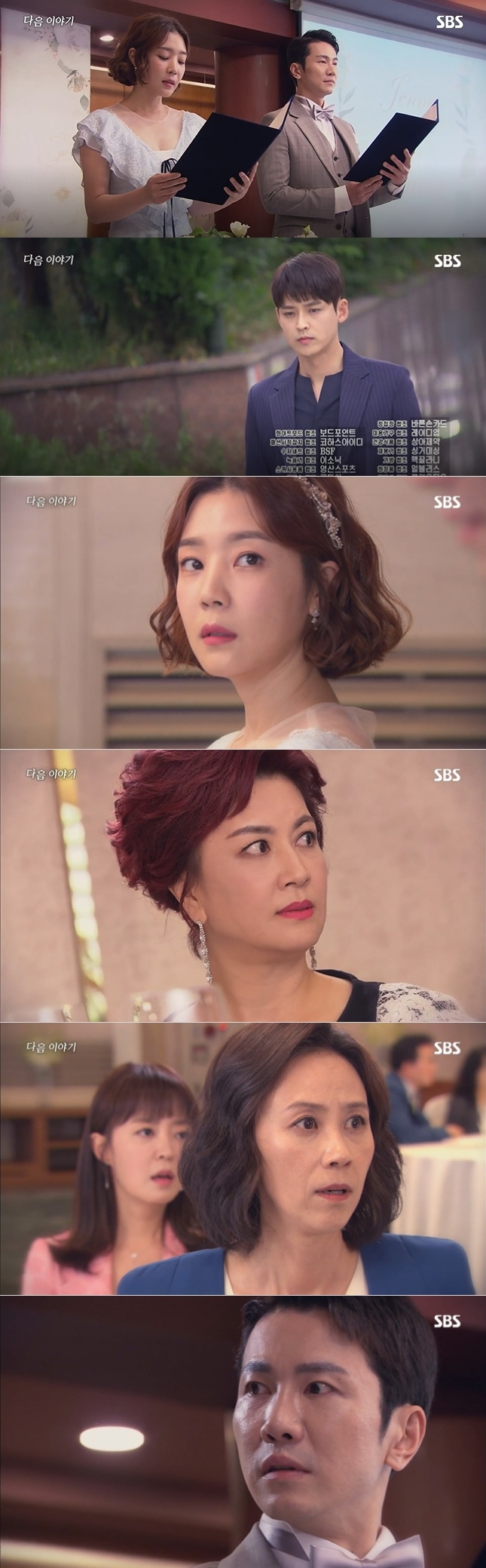 제니와 안만수와 약혼 서약을 하기 위해 하객들 앞에서 일어선다.