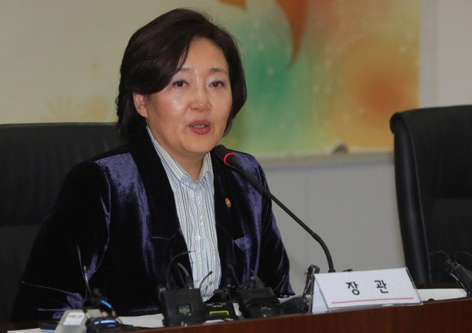 박영선 중소벤처기업부 장관은 "중소기업도 불화수소를 만들 수 있는데 대기업이 안 사준다고 한다"고 꼬집었다.