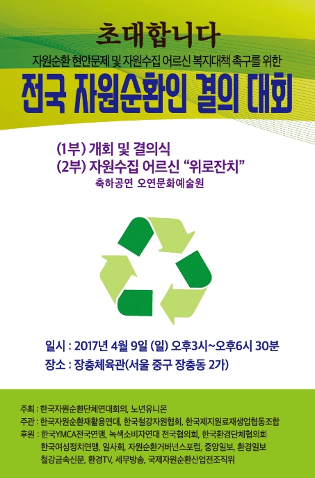 "전국 자원순환인 결의대회"... 9일 장충체육관 2천명 집결